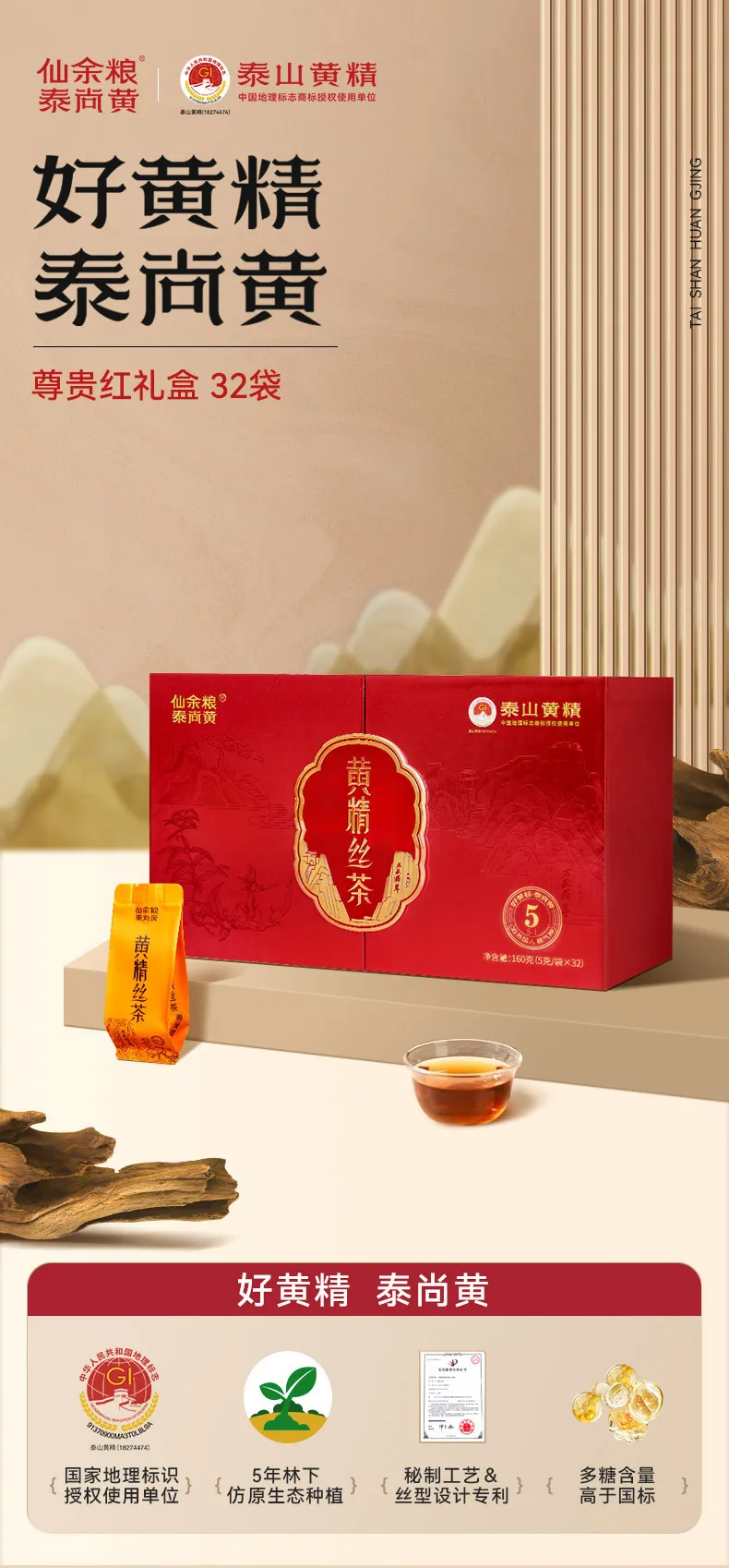 内含 32 袋优质黄精的专属红色礼品盒,是注重健康送礼的理想之选。
